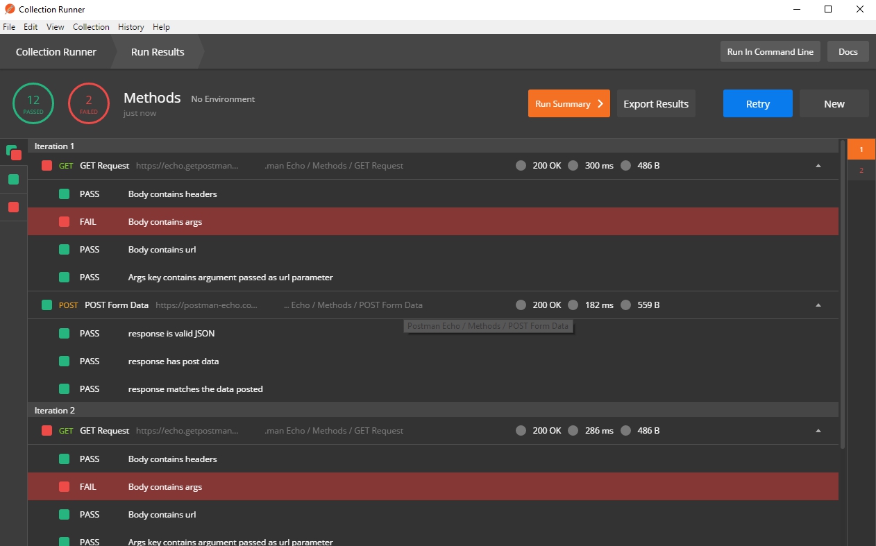 - `Iteration` – number of iterations of running the request/collection,